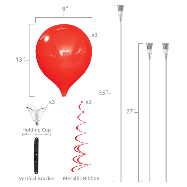 For any flat, vertical surface, the 3-balloon bouquet bracket kit is perfect for your interior or exterior advertising needs. These non- latex, anti-sag balloons are engineered to stay shiny 24/7.
