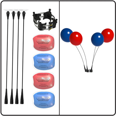 Quad Balloon Light Pole Kit adds maximum attention to your property from all angles! The 4-Pack saves you money and delivers maximum visibility. Create multiple levels of balloon action up the pole if desired. This is a great option if theft is prevalent in your area. Kit includes 4 balloons with stems, 4 light pole brackets and the bands to strap them securely in place. 10″ diameter bands.
